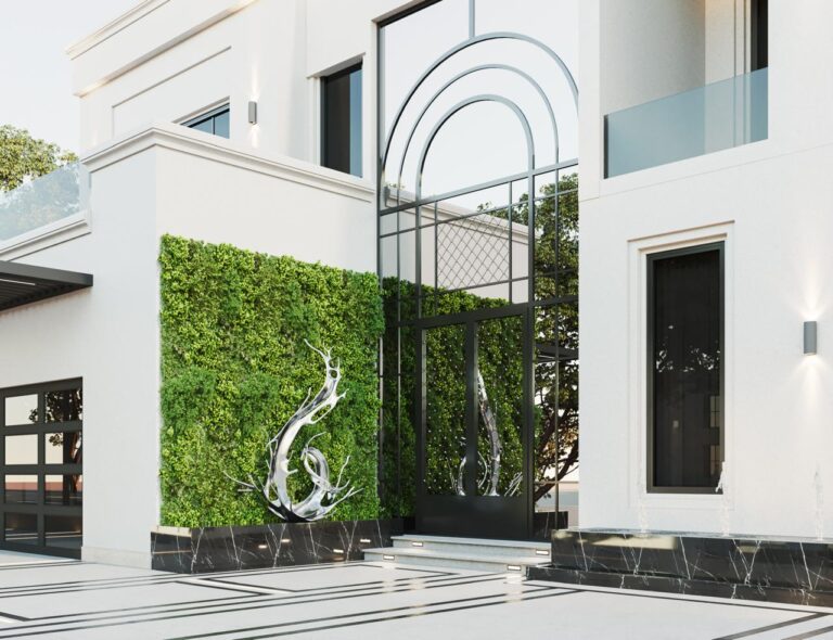 The Silk Leaf Villa in Al Barari, Dubai, redefines contemporary luxury with its seamless fusion of elegance, nature, and architectural brilliance. Set amidst the lush greenery of one of Dubai’s most exclusive communities, the villa showcases a refined aesthetic marked by clean lines, soft tones, and striking modern geometry. Expansive glass windows and open layouts invite natural light to flow through every corner, creating an airy sense of calm and connection to the outdoors. The landscaped gardens, tranquil water features, and poolside lounge exude resort-style serenity, while the sculptural details and lush green walls add an artistic touch. Every element — from the façade to the finishes — speaks of sophistication and harmony. The Silk Leaf Villa is more than a residence; it’s an elegant retreat where luxury meets nature, designed for those who appreciate beauty, balance, and timeless design.